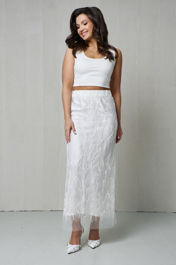 Комплект состоящий из юбки прозрачной, юбки атласной и мини шорт. Юбка1 прямого силуэта из сетки с вышивкой бисером на широкой резинке, одношовная, в шве заднего полотнища юбки разрез. Юбка2 прямого силуэта из лёгкого атласа на широкой резинке, одношовная, в шве заднего полотнища юбки разрез. Длина миди. Юбки выполнены из качественных материалов, с обработкой швов по специальной технологии. МИНИ-ШОРТЫ ВХОДЯТ В КОМПЛЕКТ. Дополнить образ вы можете приобретя в нашем магазине кроп топ.