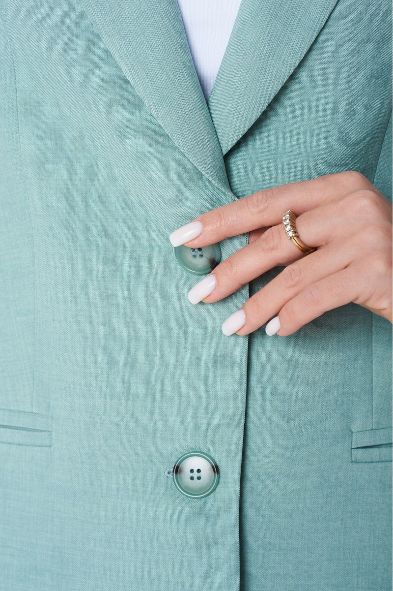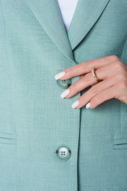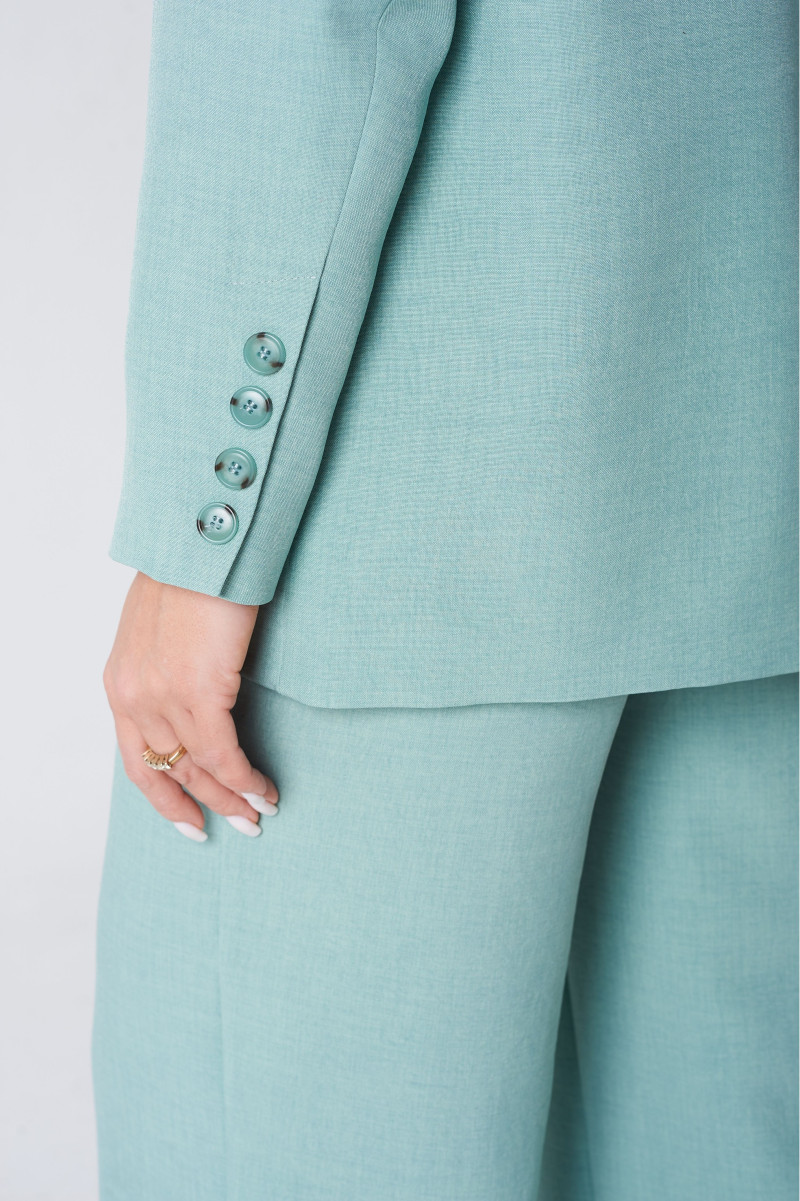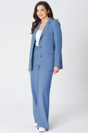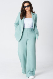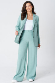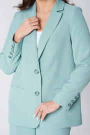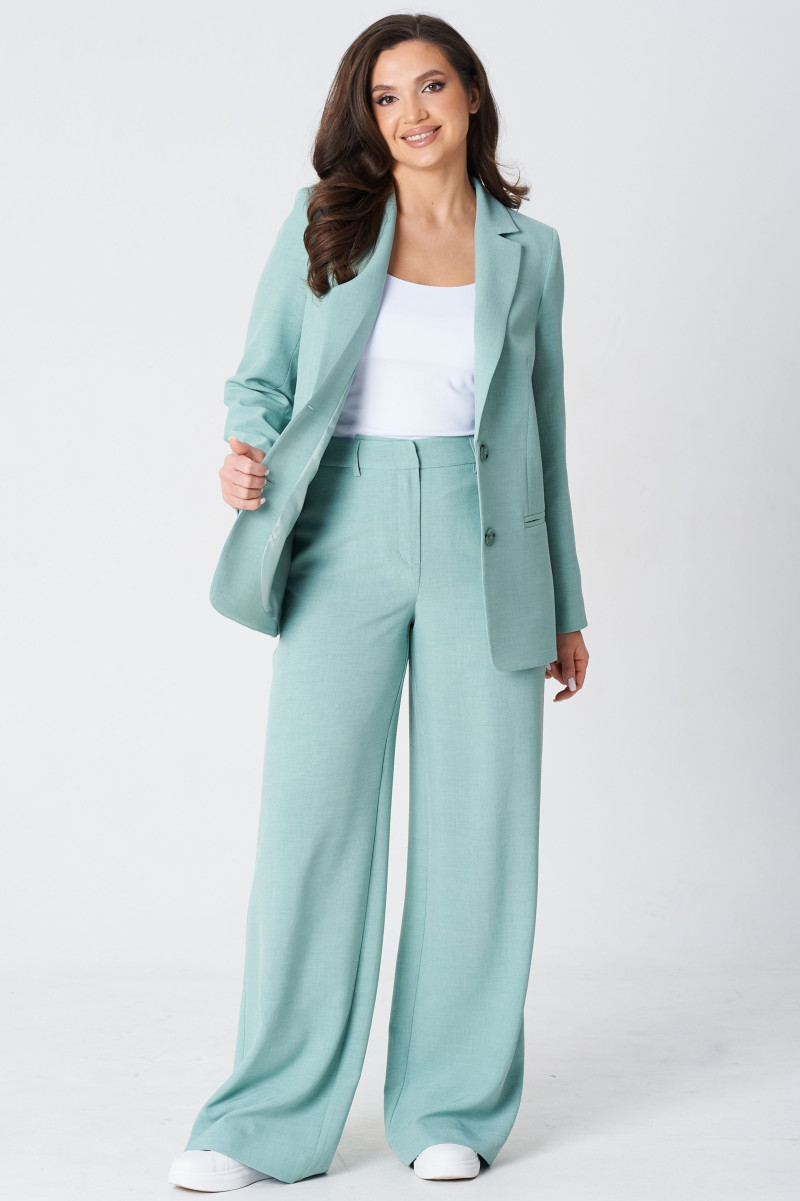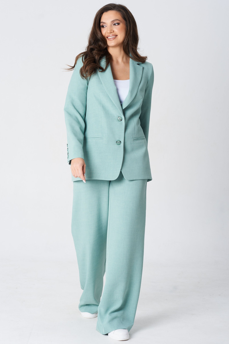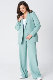 Комплект женский состоящий из жакета и брюк. Жакет прямого силуэта на подкладке. Перед с декоративными вытачками и функциональными карманами в рамку. Воротник пиджачного типа. Застежка центральная бортовая застегивающаяся на 2 декоративных пуговицы. Рукав длинный втачной со шлицей и с декоративными пуговицами.