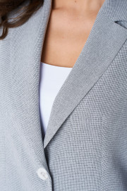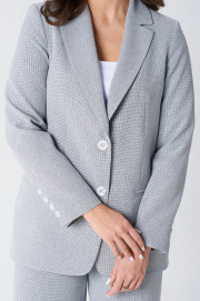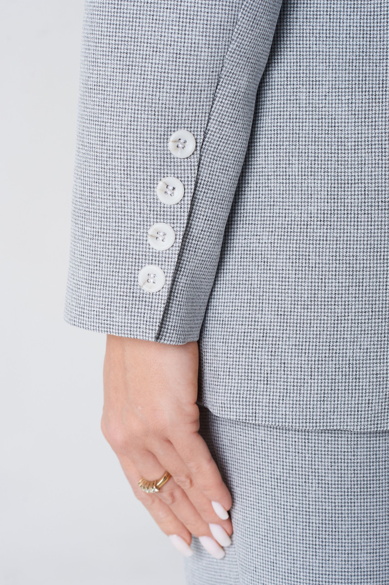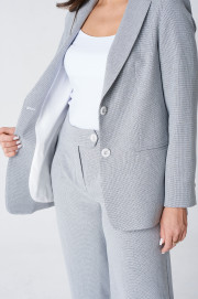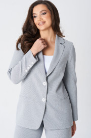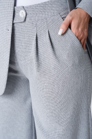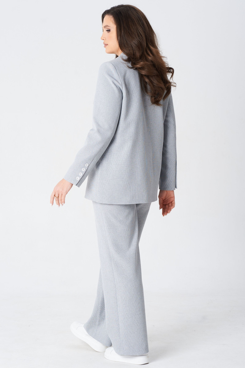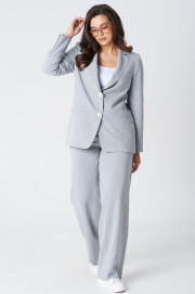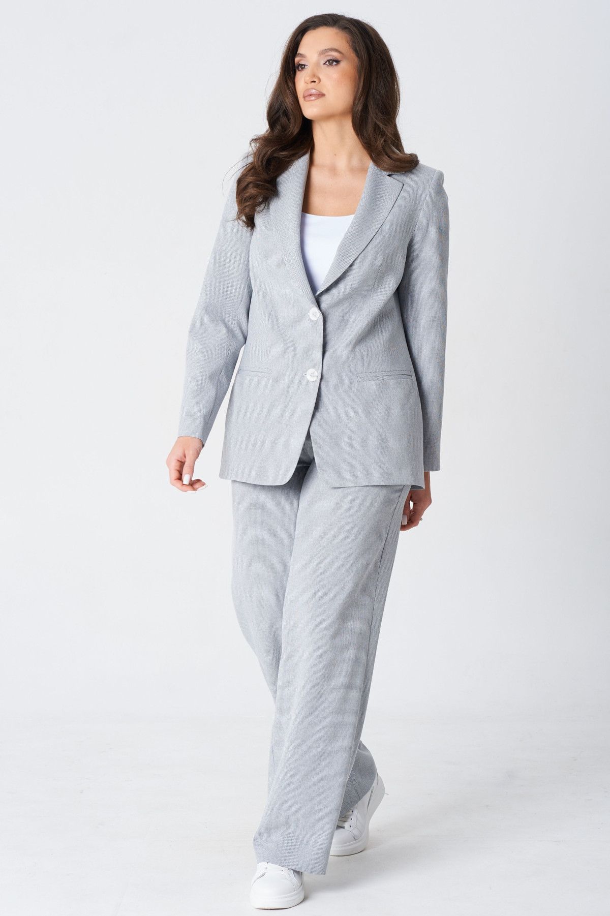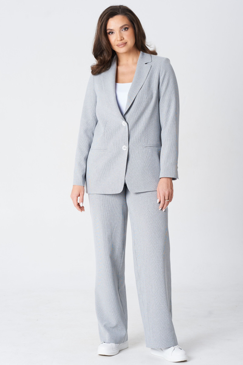Комплект женский состоящий из жакета и брюк. Жакет прямого силуэта на подкладке. Перед с декоративными вытачками и функциональными карманами в рамку. Воротник пиджачного типа. Застежка центральная бортовая застегивающаяся на 2 декоративных пуговицы. Рукав длинный втачной со шлицей и с декоративными пуговицами.