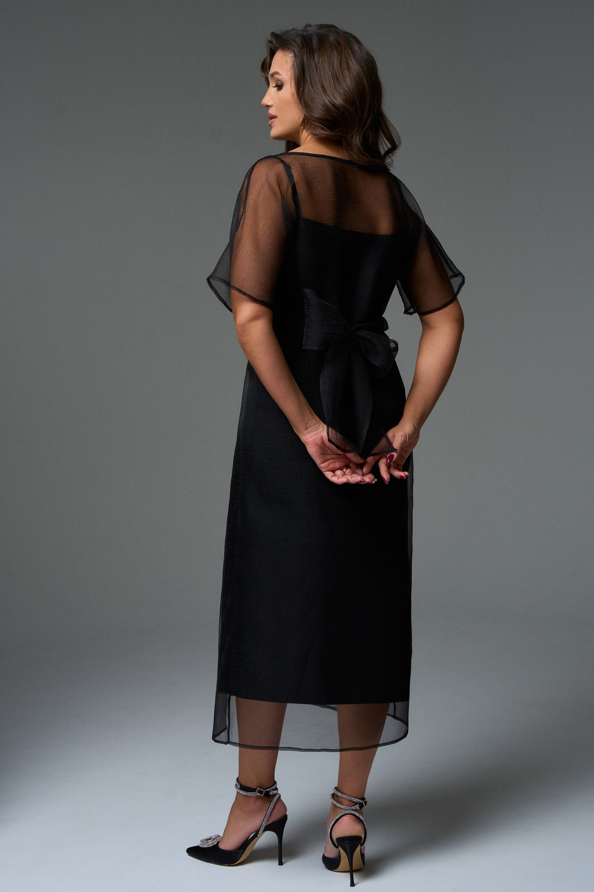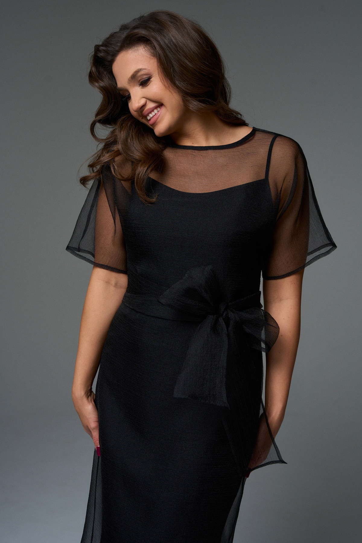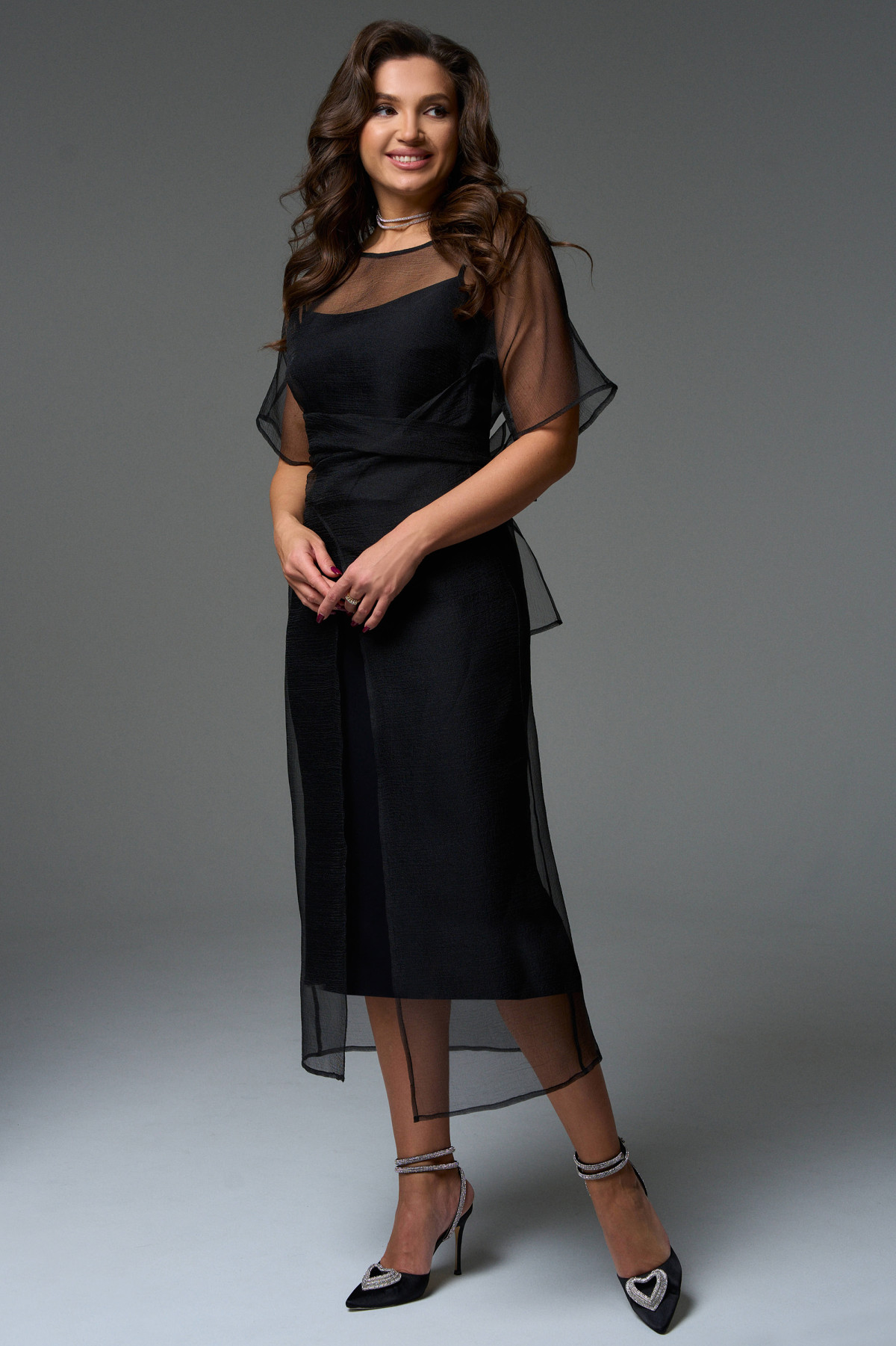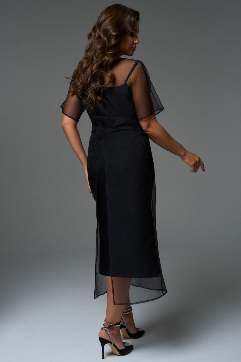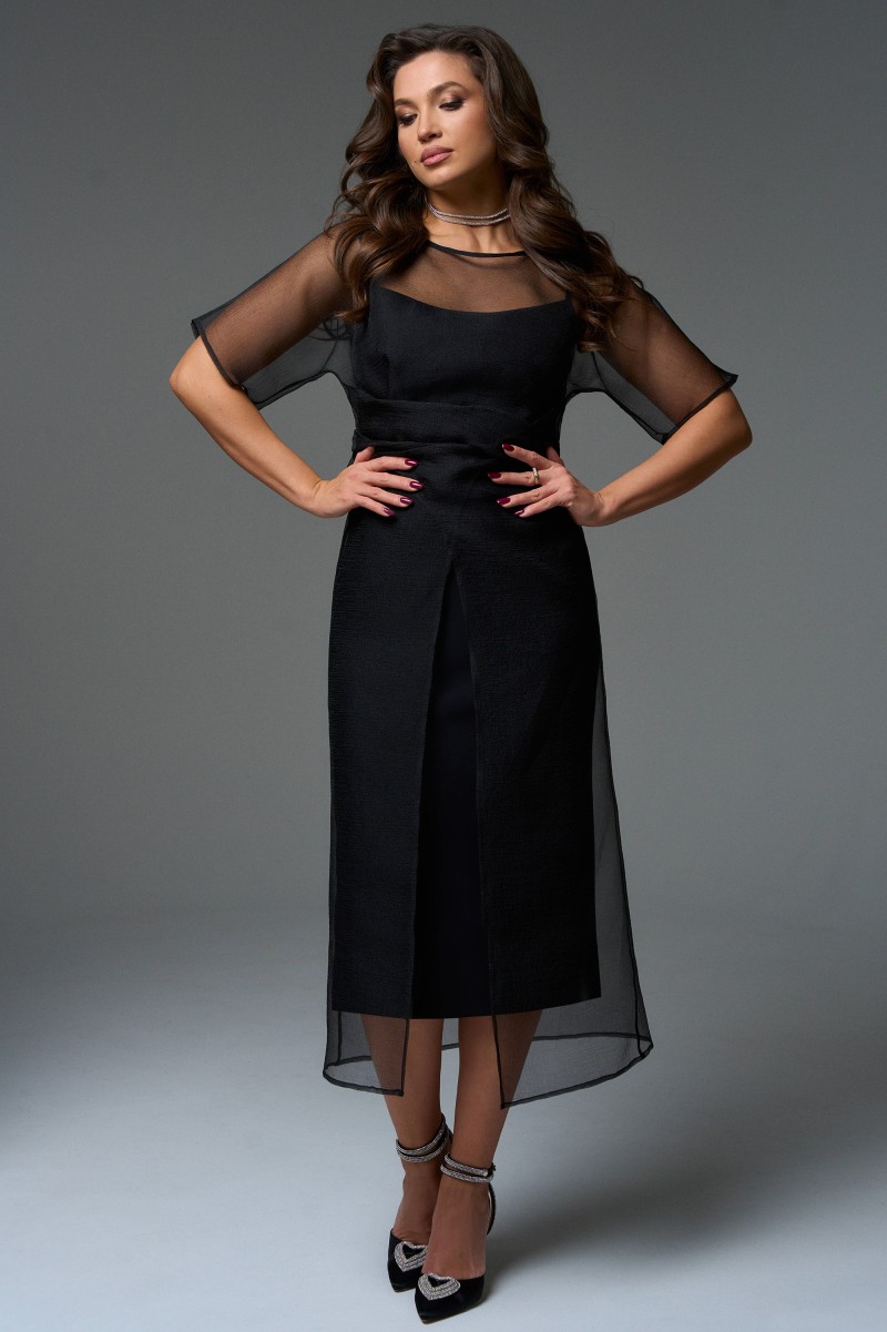 Это платье сделает Вас королевой вечера, прозрачная ткань тонкой дымкой покроет фигуру, приподнося Вашу смелость и эфектно выделит изящность силуэта, который подчеркнет нижнее платье из трикотажного полотна.