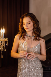 Платье на тонких, двойных, регулируемых бретелях, полуприлегающего силуэта, на подкладке.