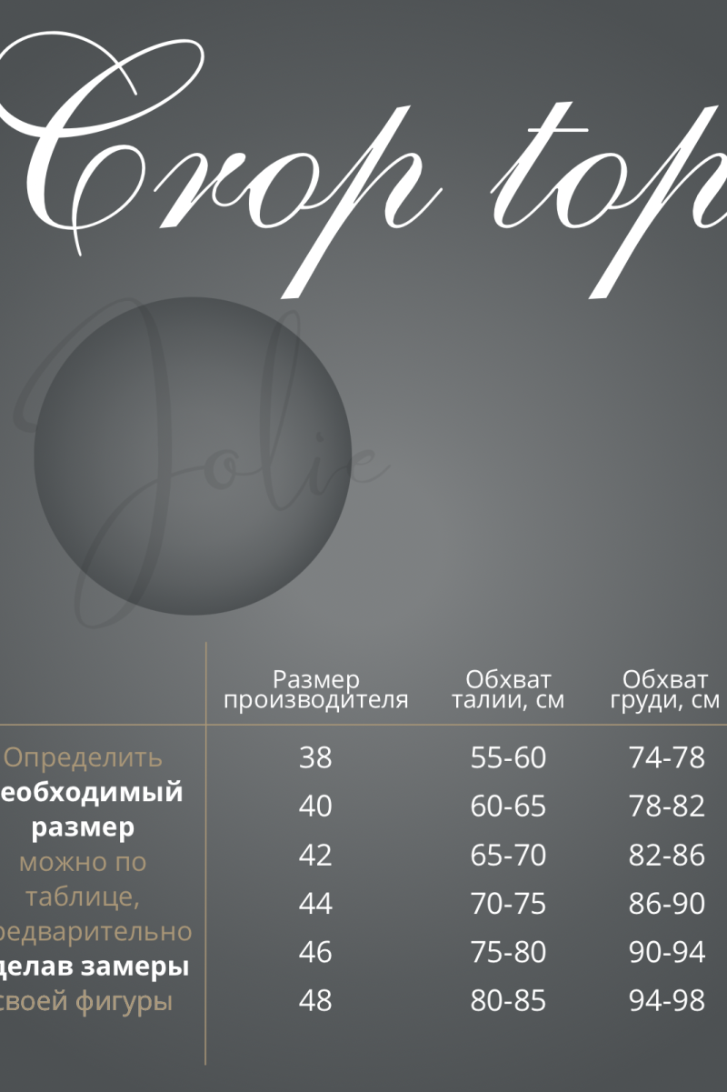| Размер | Обхват груди (см) Грудь | Обхват талии (см) Талия | Обхват бедер (см) Бедра |