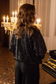 Бомбер на подкладке, прямого силуэта со спущенной линией плеча. Рукав длинный. Застежка на тесьму-молнию. Низу рукава, изделия и горловина оформлены трикотажным довязом.